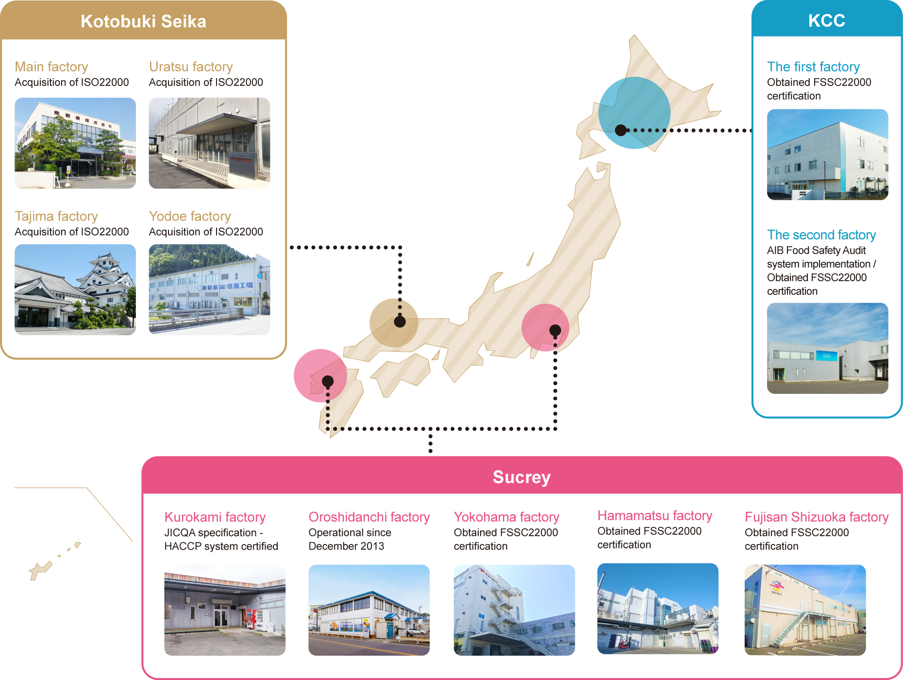 We have established a food safety policy for all of our manufacturing plants, and we promote the advancement of our production plants by informing employees of the policy and striving for continual improvement. In addition, we have obtained appropriate quality management system certifications for each of our plants to ensure thorough quality control.